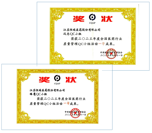 凯发娱乐医药荣获2023年度全国医药行业质量管理QC小组活动一等奖
