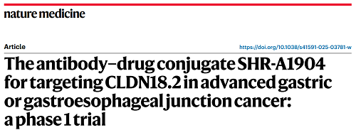 凯发娱乐医药CLDN18.2 ADC创新药SHR-A1904治疗胃癌临床研究结果荣登Nature Medicine